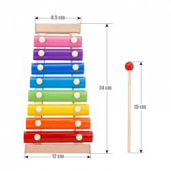 . Dimensiones del Xilófono: 8.5 cm x 24 cm x 12 cm (Aprox).