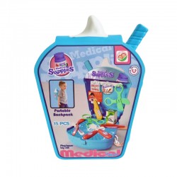 . Contiene: 01 Caja de almacenamiento + 15 Piezas de instrumentos de medicina (Tijeras, Termómetro, Jeringa, Píldoras (caja simulada), Otoscopio, Cuchara médica, Tarjeta de identificación, Bisturí, Pinzas, entre otros accesorios)