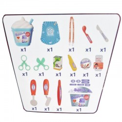 . Viene en un práctico estuche tipo mochila en forma de helado que permite transportar todas las piezas fácilmente y mantenerlas organizadas.