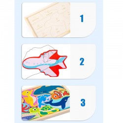Contiene: 1 tabla base y 9 piezas de rompecabezas.